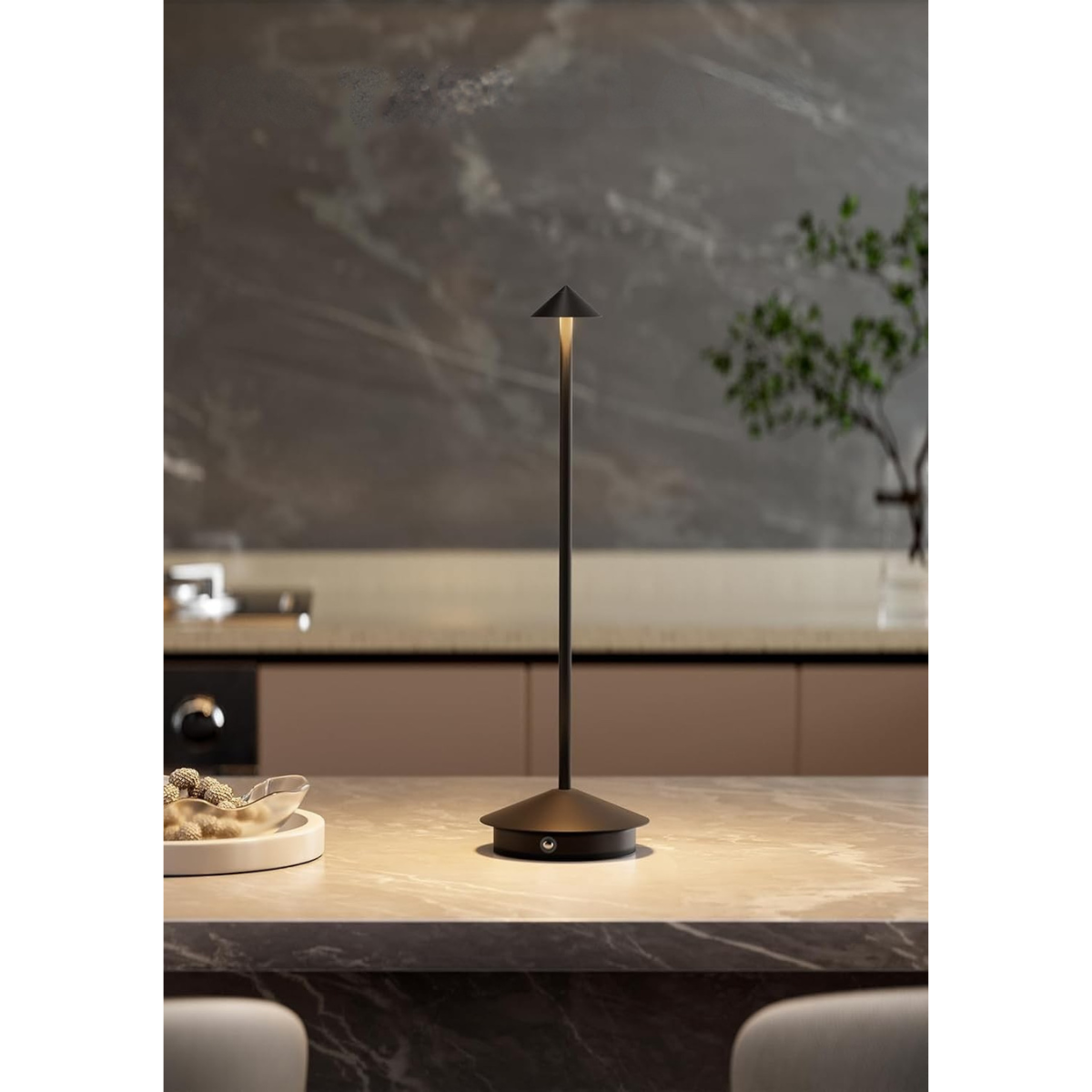 De Finn tafellamp van Dutch Standard is een verfijnd statement in elk interieur. Slank en strak (29 cm hoog), uitgevoerd in mat zwart aluminium. Perfect als subtiele sfeermaker op restauranttafels, werkplekken of in de woonkamer.