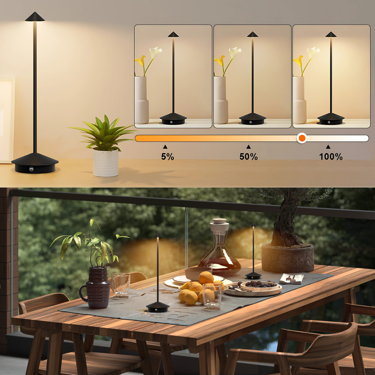 Kies uit drie lichtkleuren en regel traploos de helderheid met een simpele aanraking. Van zacht kaarslicht tot helder leeslicht. Altijd de juiste sfeer binnen handbereik.